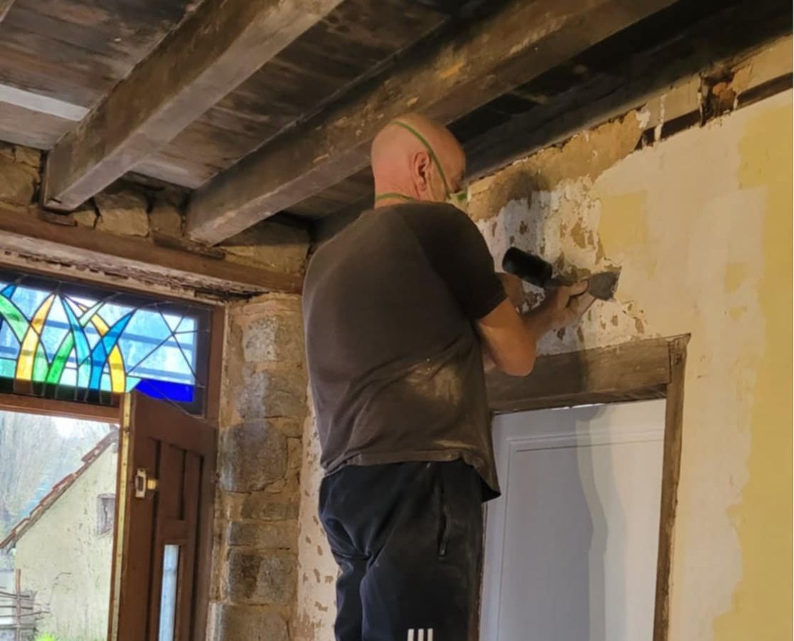 Removal of old plaster to reveal beautiful stone and brick work underneath. Finish with some fresh pointing and you'll have a gorgeous new-old look.